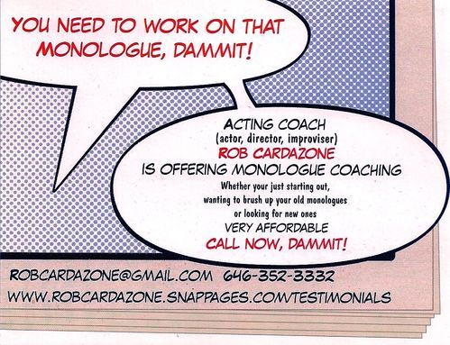 - If you're looking specifically for an audition coach to brush up on monologues, work on new ones, or if you need to prepare sides for a particular audition, please contact me.